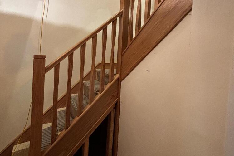 We renovated this staircase in keeping with the traditional style of the property. New solid oak stringers, chamfered spindles, handrail, square newel posts and bottom turned feature newel post were installed.